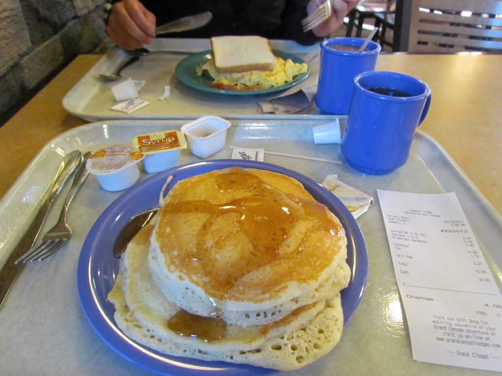 Die Sonne war dann nun da und irgendwie auch unser Hunger. Also ab in die Cafeteria und die Teller einmal vollgemacht. Das Sandwich und die Pancakes waren gut, mussten sie auch, denn wir hatten ja noch einiges vor. Wir waren gegen 6:30 Uhr fertig mit dem Frühstück und machten uns zurück auf den Weg zur Lodge.