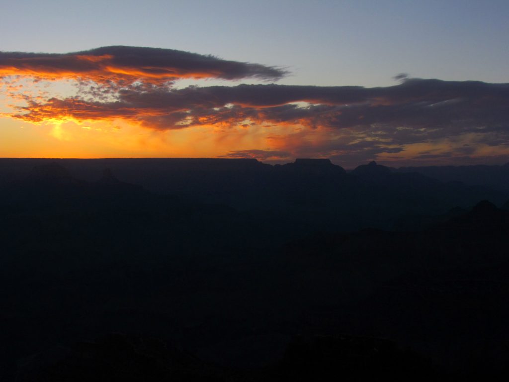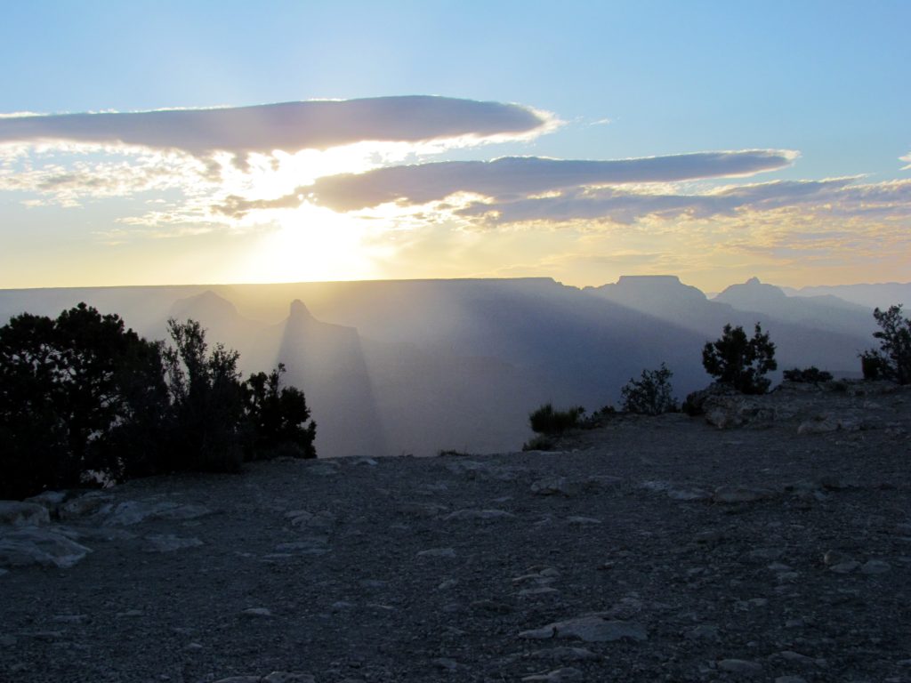 Die Sonne ließ uns noch etwas warten und frieren, aber es war spannend zu beobachten wie sich der Himmel über dem North Rim veränderte. Als dann der Moment da war, hörte man ein raunen unter den Fotografen/Urlaubern. Ein wirklich schöner Moment. Jetzt durfte man gar nicht aufhören zu fotografieren. Jede Sekunde änderte sich der Lichteinfall in den Canyon und ließ ihn immer mehr in seinem roten Glanz erstrahlen. Das war jedenfalls einer dieser Momente die wir nie vergessen werden!