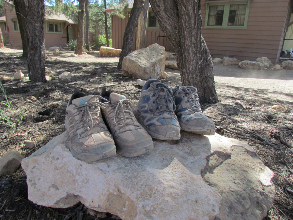 Wieder zurück im Zimmer wurden dann die Rucksäcke pickepackevoll gepackt. Warum? Jetzt ging die größte Wanderung unseres Urlaubes/Lebens los. Wir wollten über den Bright Angel Trail bis zum Plateau Point und wieder zurück. Laut Parkheft 8-12 Stunden Dauer, 20Km Strecke und über 900 Höhenmeter. Wir sind ja noch jung.