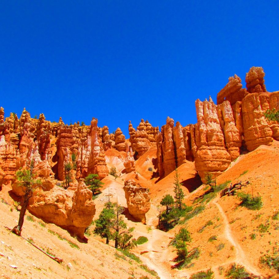 Besonders beeindruckend ist der Abschnitt durch die berühmte Schlucht Wall Street, in der hohe Felswände und schlanke Hoodoos dicht nebeneinander stehen.