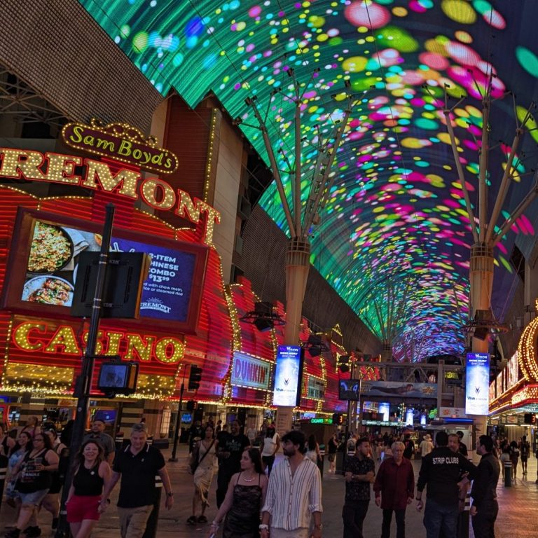 Du verlässt die Wüste und fährst zurück in die Glitzerwelt von Las Vegas – diesmal aber in die historische Seite der Stadt. Dein Hotel liegt direkt an der berühmten Fremont Street, dort, wo das ursprüngliche Vegas entstanden ist. Abends erwarten dich die spektakuläre Fremont Street Light Show und mehrere Bühnen mit Live-Musik. Ein Abend voller Retro-Vibes, Neonlichter und guter Stimmung!