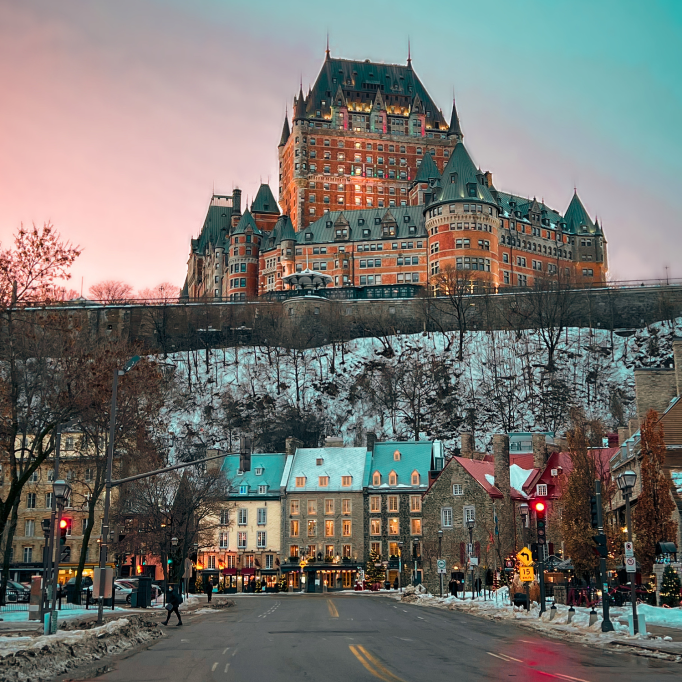 Quebec City fühlt sich an wie eine Reise nach Europa – nur mitten in Kanada. Bei einer geführten Stadtbesichtigung erkunden wir die historische Altstadt mit ihren kleinen Gassen und dem berühmten Château Frontenac.